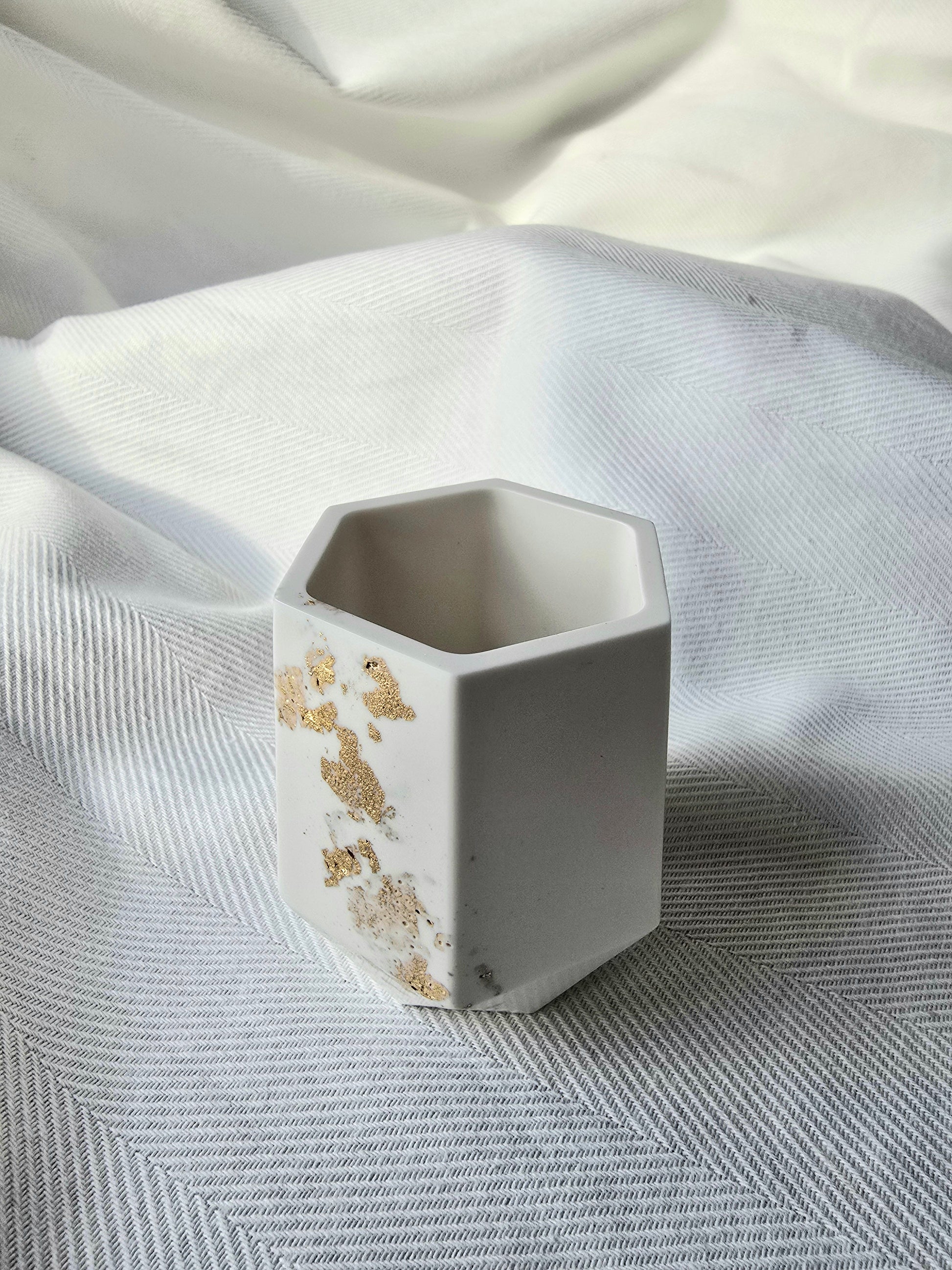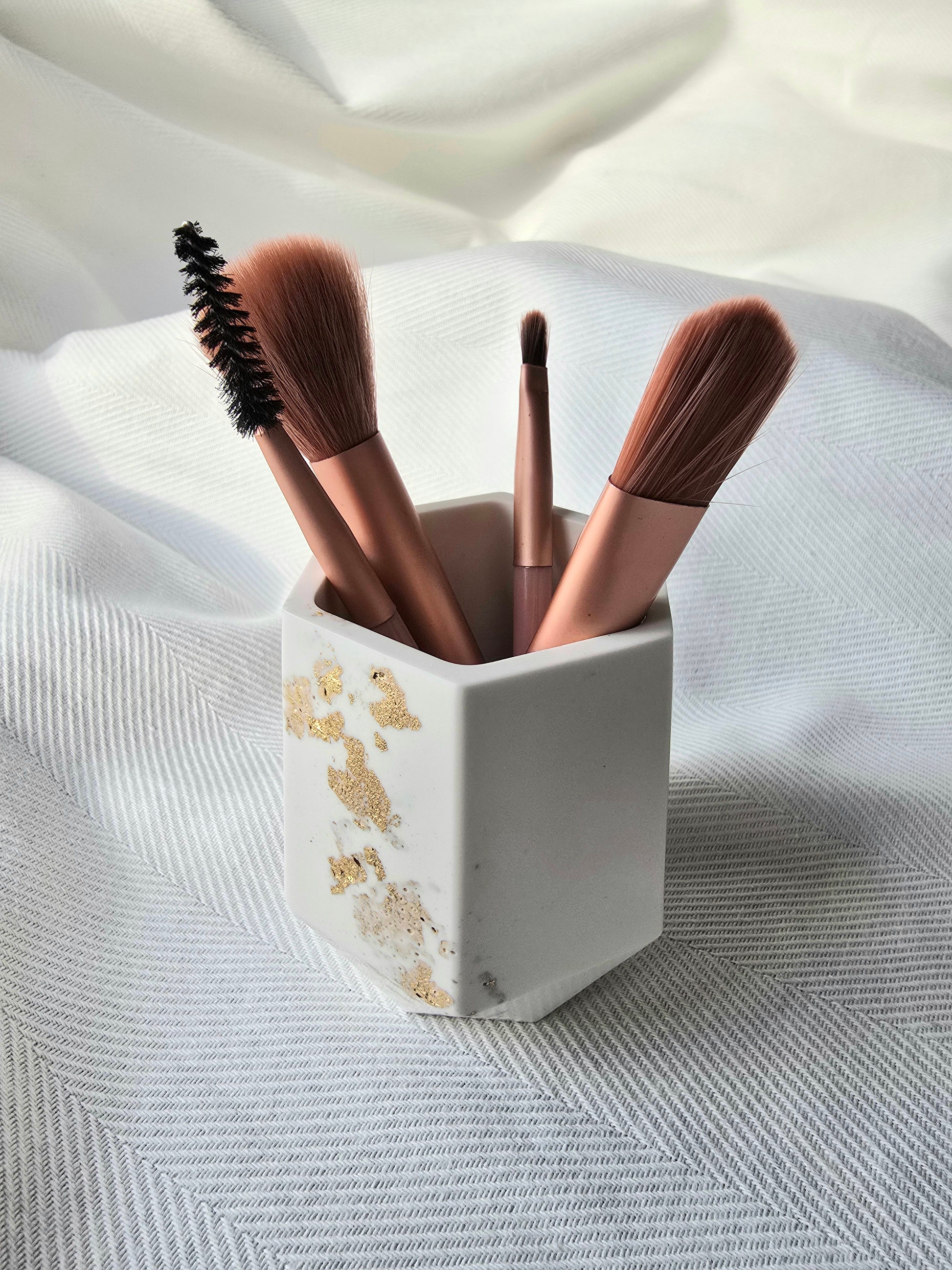 This handcrafted small vase is a stylish and versatile addition to any space. While perfect for displaying decorative arrangements or fresh flowers, it’s also ideal for organizing everyday essentials like pencils, makeup brushes, Q-tips, and more. With its durable, waterproof construction, this vase combines both beauty and function, making it a practical accent for any room.
